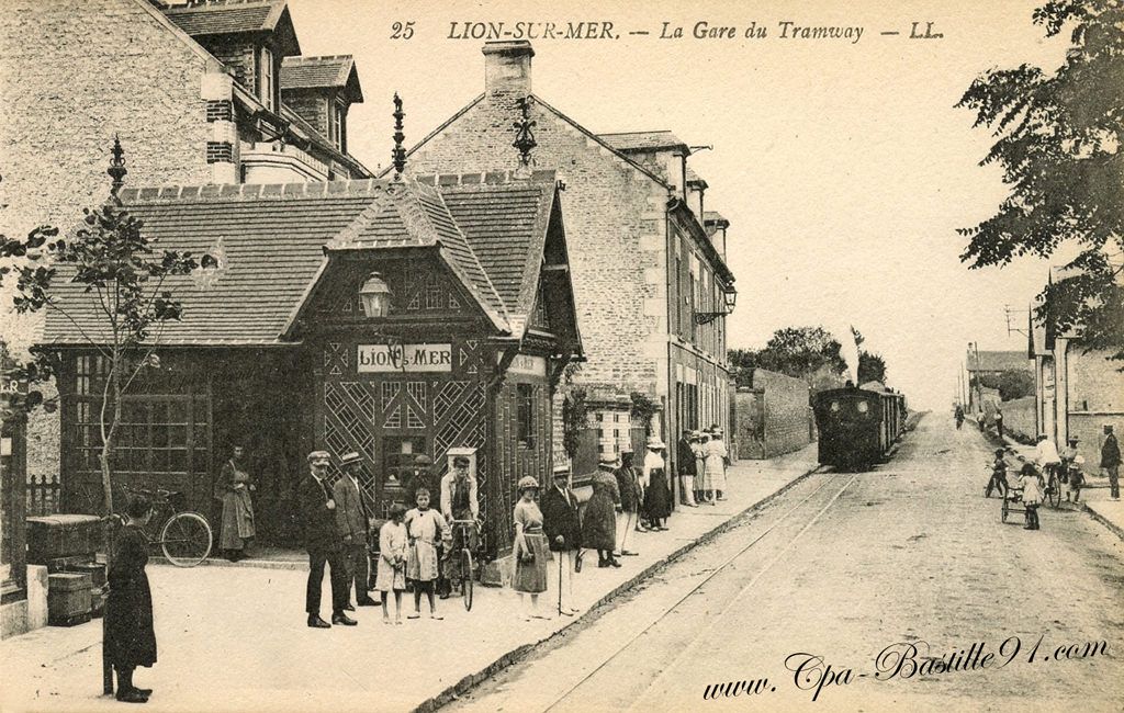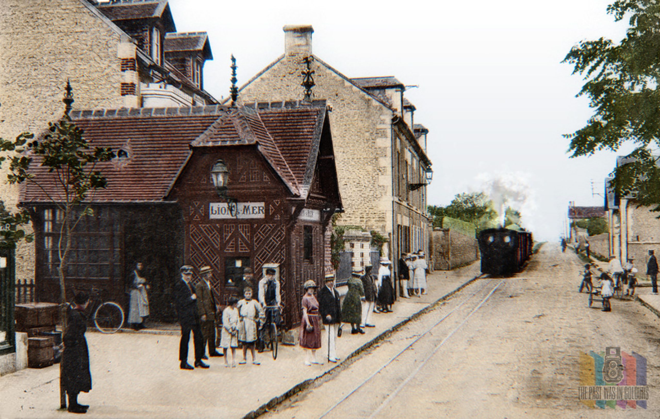 Colorisation photographique de la gare du tramway de la ville de Lion-sur-Mer (Calvados) dans le cadre d'un parcours de visite et de jeu d'enquête pédagogique.
